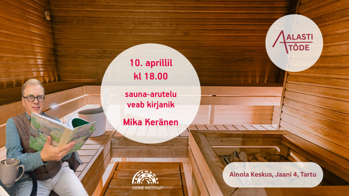 Arutelu eestvedajaks ja leilimeistriks on kirjanik Mika Keränen, kelle raamat „Saunarahu“ (2025) on pannud saunarahva südamed sulama! Raamatut on võimalik osta kohapeal 15 euro eest (sularaha).